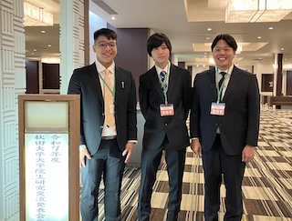 On October 28, 2025, Alejo san, Matba san, and Suzuki san presented their research at the Akita University Graduate School Student Research Exchange Presentation 2025.